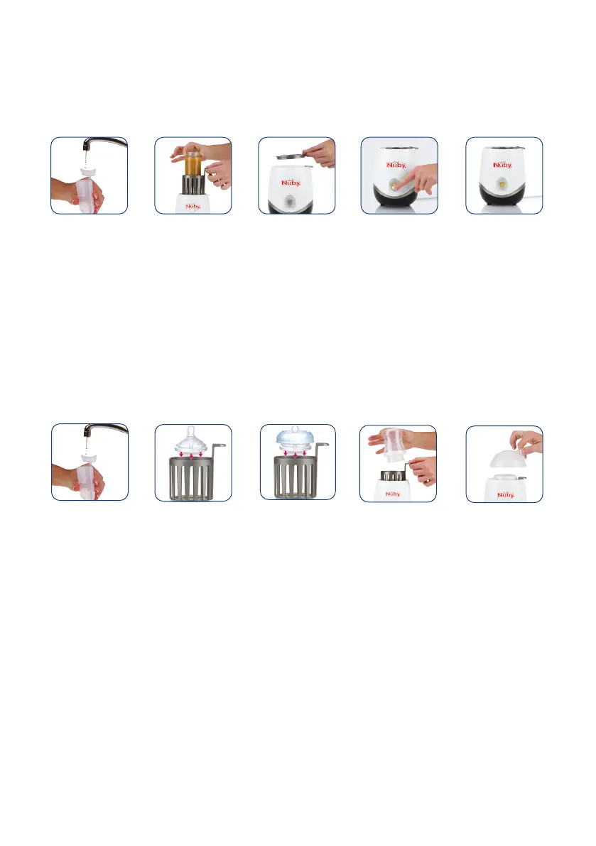 Gläschen erneut. Überprüfen Sie immer die Temperatur von Babynahrung, bevor Sie mit dem Füttern beginnen. Lassen Sie das Gerät zwischen den Anwend-