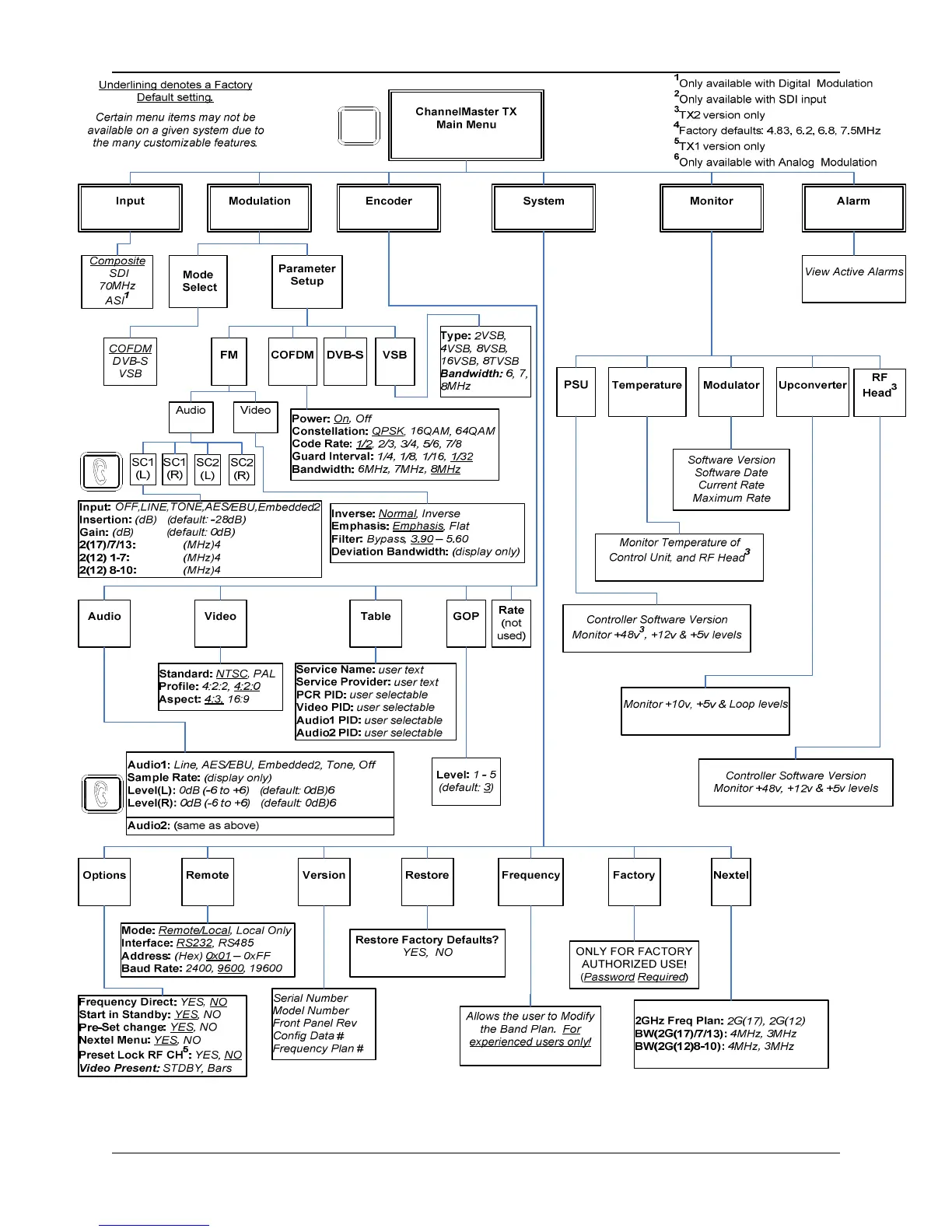 Nucomm CHANNELMASTER TX1 - Figure 5-2 Channelmaster Menu Tree