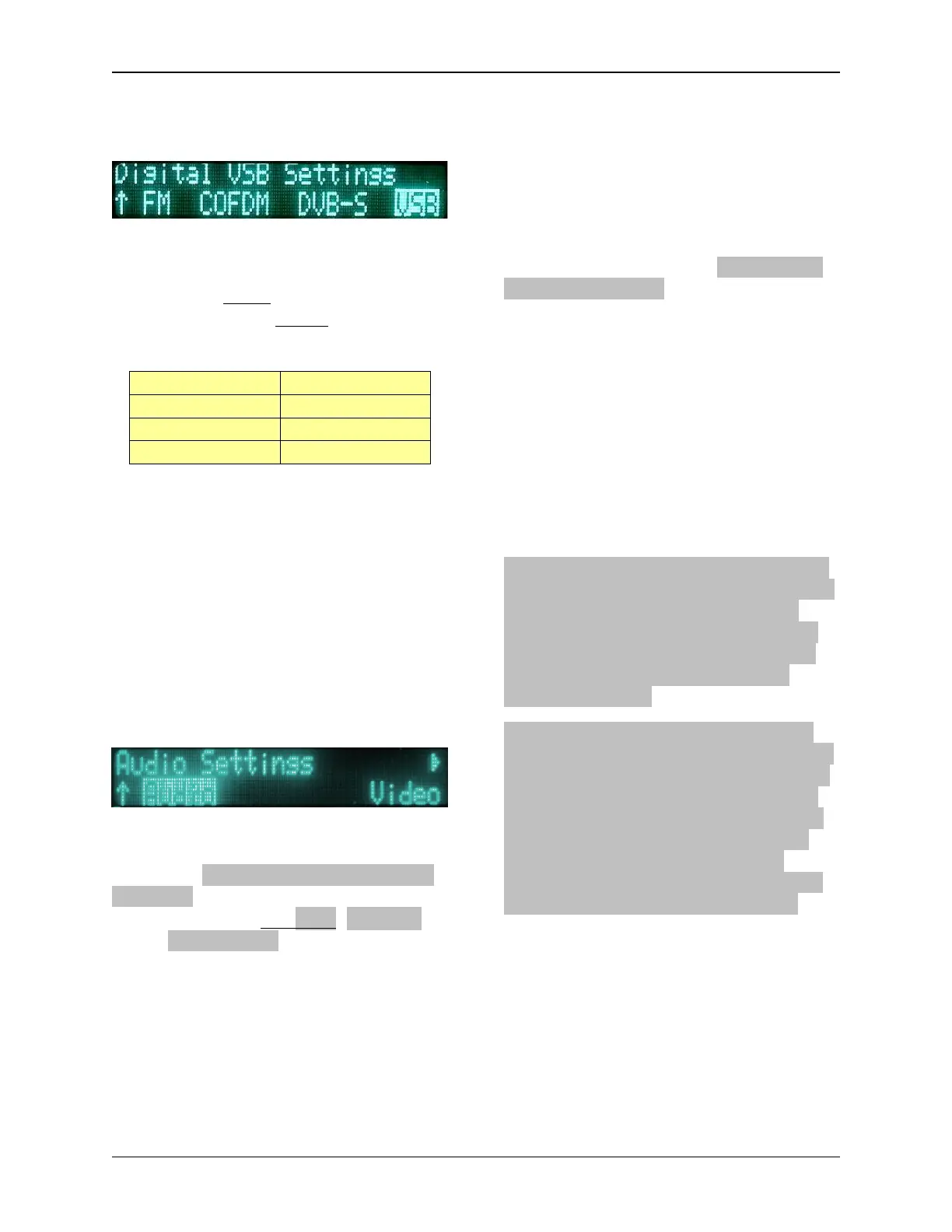 changed using the VSB sub-menu: