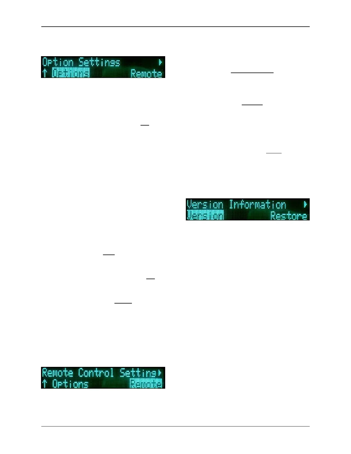 With the Option sub-menu, the user can
