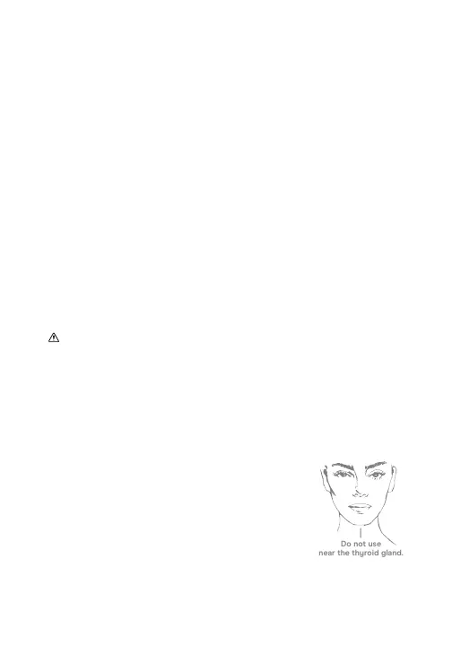 • Do not use this device if you have a heart pacemaker, heart rhythm stimulator placed in your