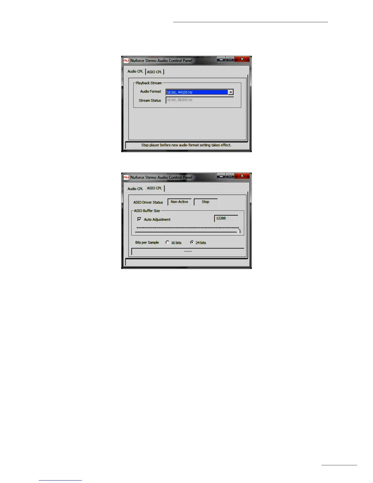 The ASIO tab should be set to 24-bit and Auto Adjust: