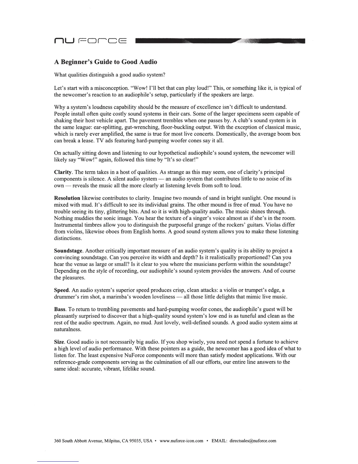 listen for. The least expensive NuForce components will more than satisfy modest applications. With our