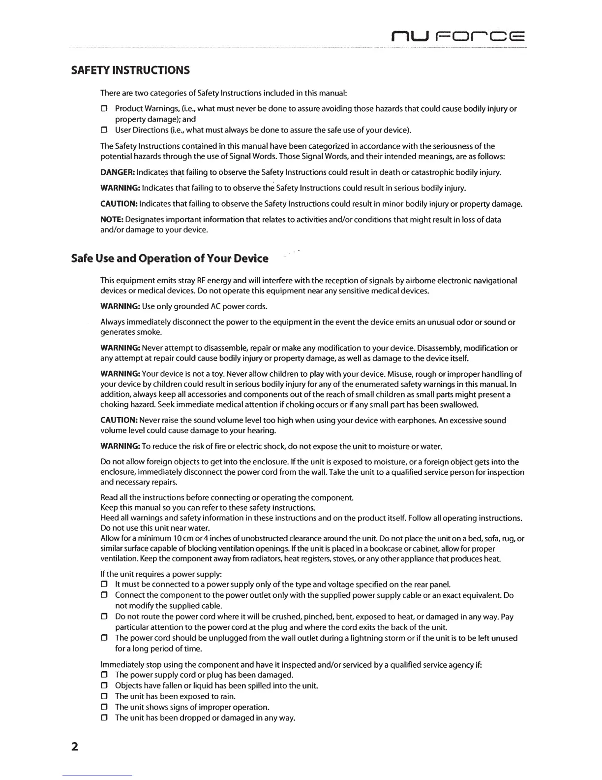 Safety Instructions could result