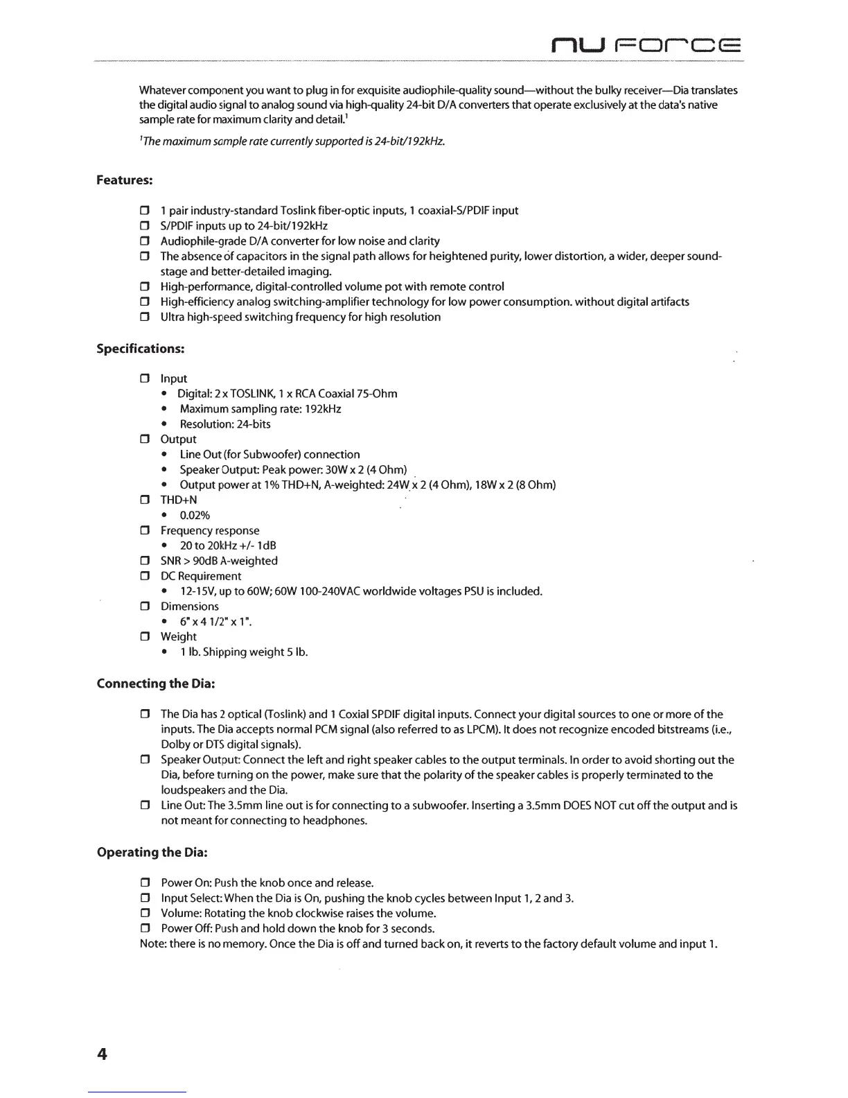 0 The Dia has 2 optical (Toslink) and 1 Coxial