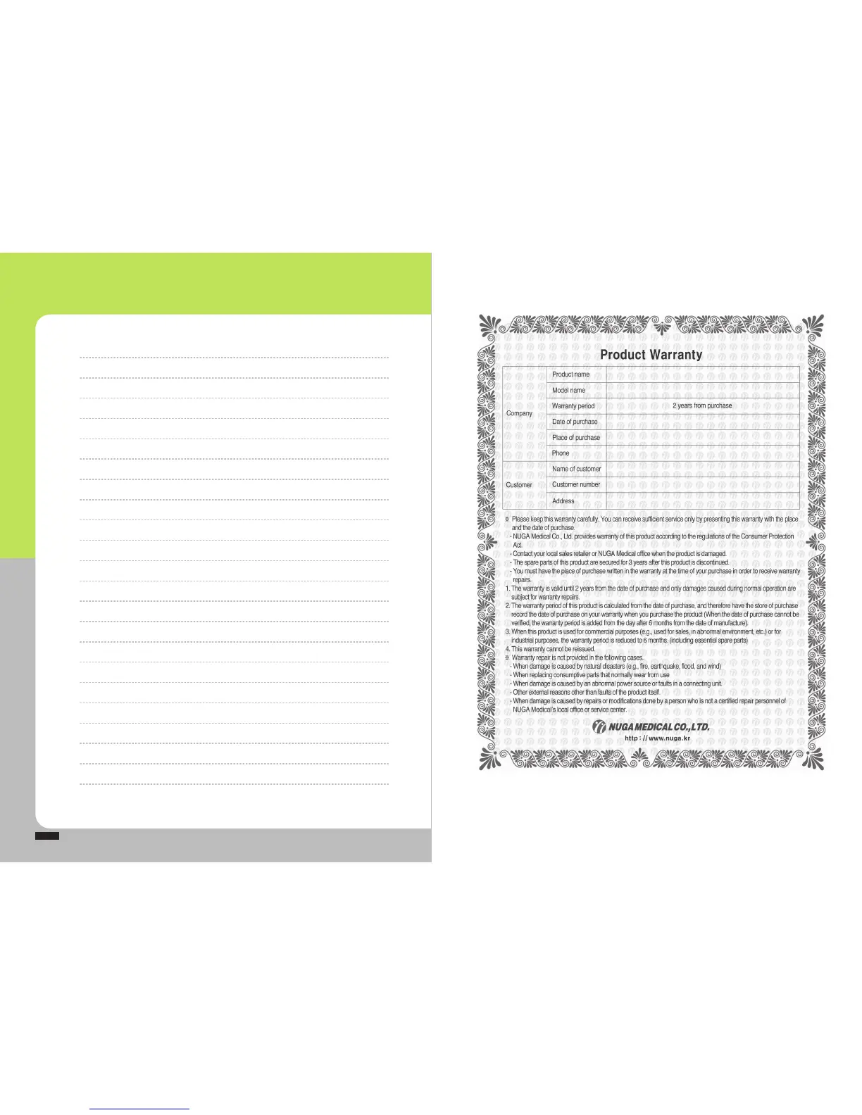 Nuga NM-5000P - Product Warranty Information; Warranty Registration Details; Warranty Terms and Conditions