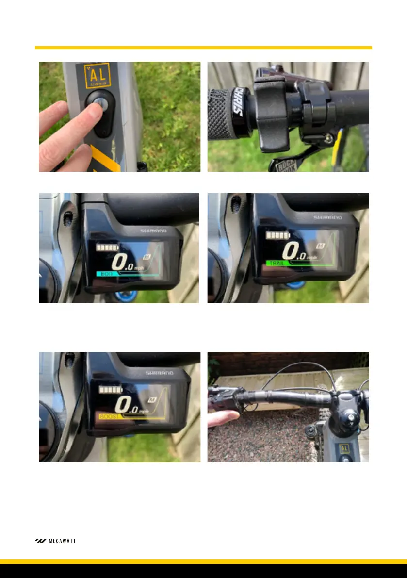 1. Switch on e-bike 2. Use left hand e-bike shifter to select mode: