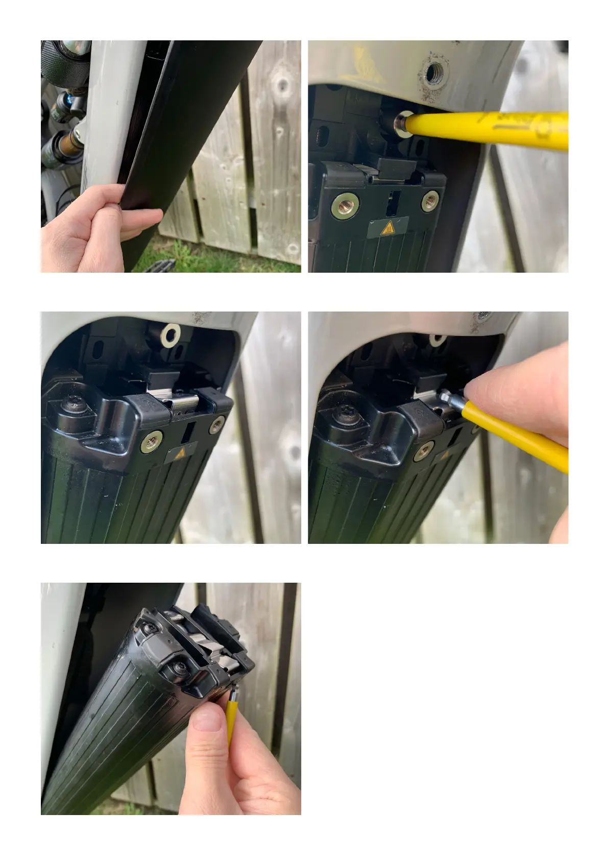 Nukeproof MEGAWATT 297 - Step 5: Slide Battery Door Up; Step 6: Release Battery Bolt; Step 7: Battery Front Stop; Step 8: Release Silver Clip