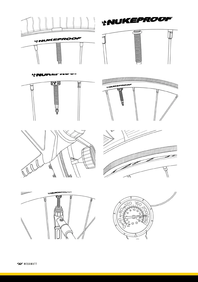 15. Connect your tubeless pump to the valve. 16. Charge the tubeless pump cannister and then release