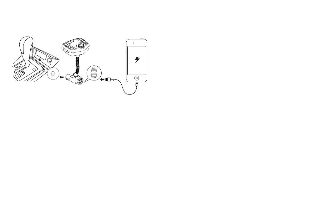 demasiado largo, puede afectar el emparejamiento de Bluetooth con el transmisor FM.