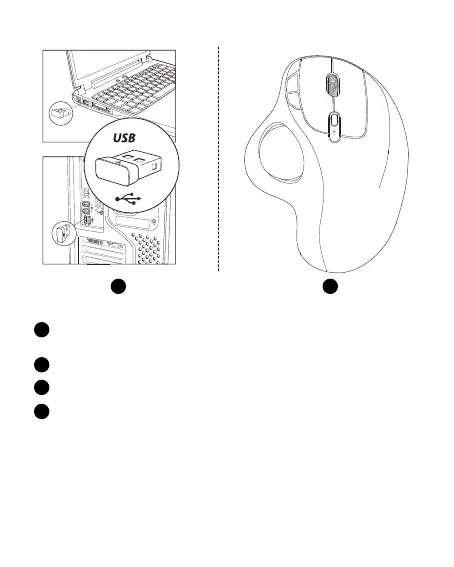 Turn on the mouse, Shortly press the mode switch button to the USB mode, the