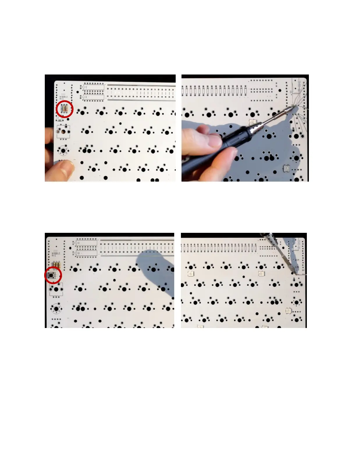 Fit and solder the reset switch as shown below.