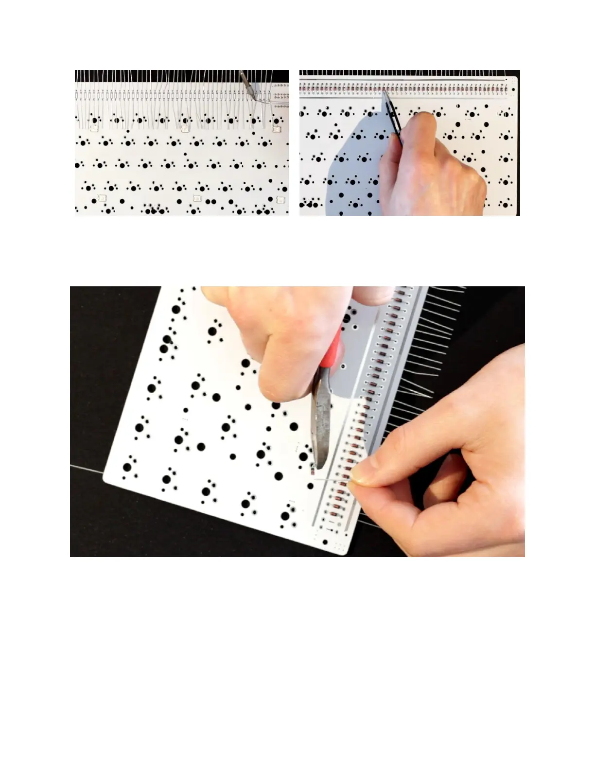 diodes, clean with rubbing alcohol and use the snips to clip the leads as close to the PCB as