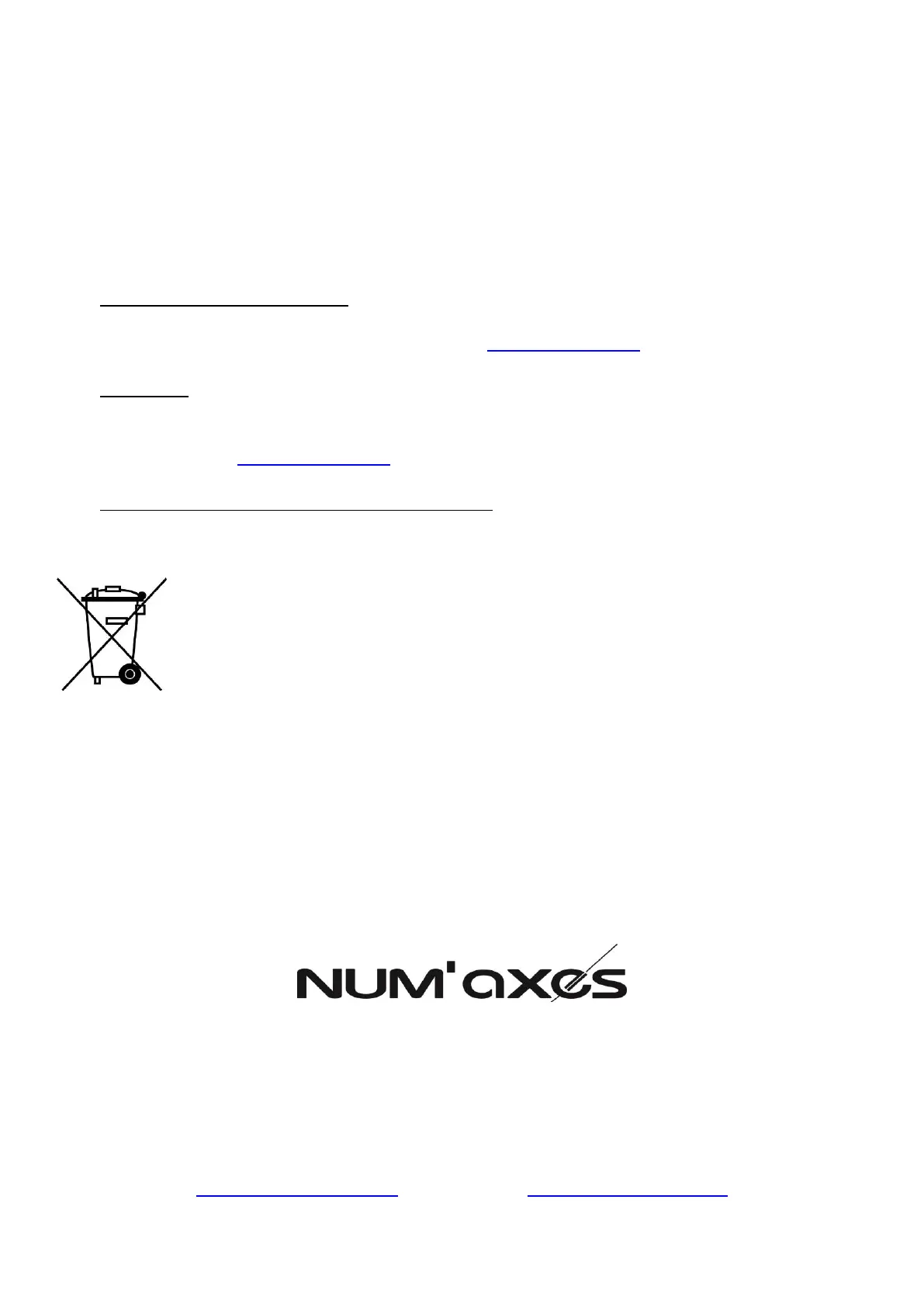 3. Si le produit est reconnu défectueux, NUM’AXES le réparera ou l’échangera selon son choix.