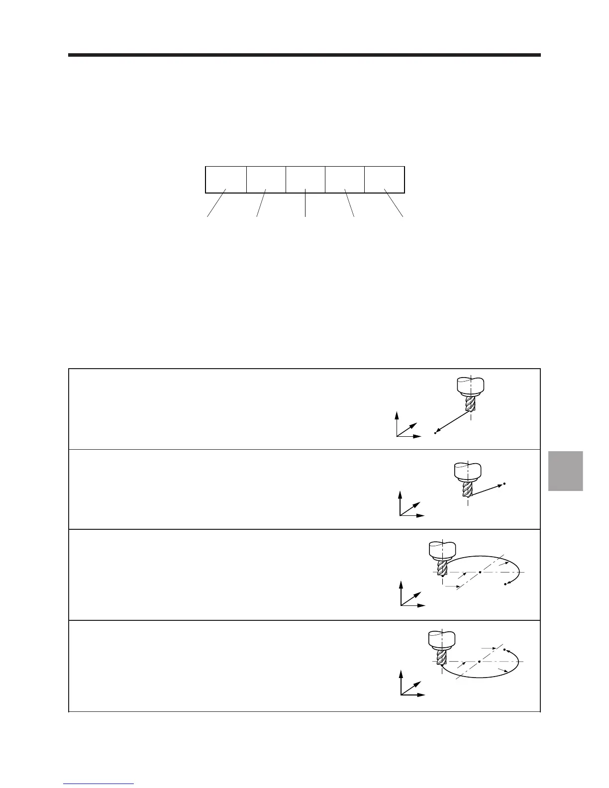 Syntax: N.. [G90/G91] G01 [R±] X.. Y.. Z.. [F..]