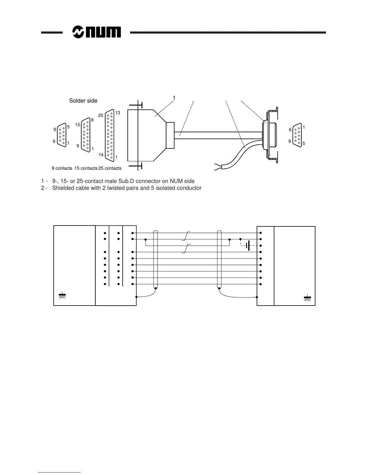 1 - 9-, 15- or 25-contact male Sub.D connector on NUM side