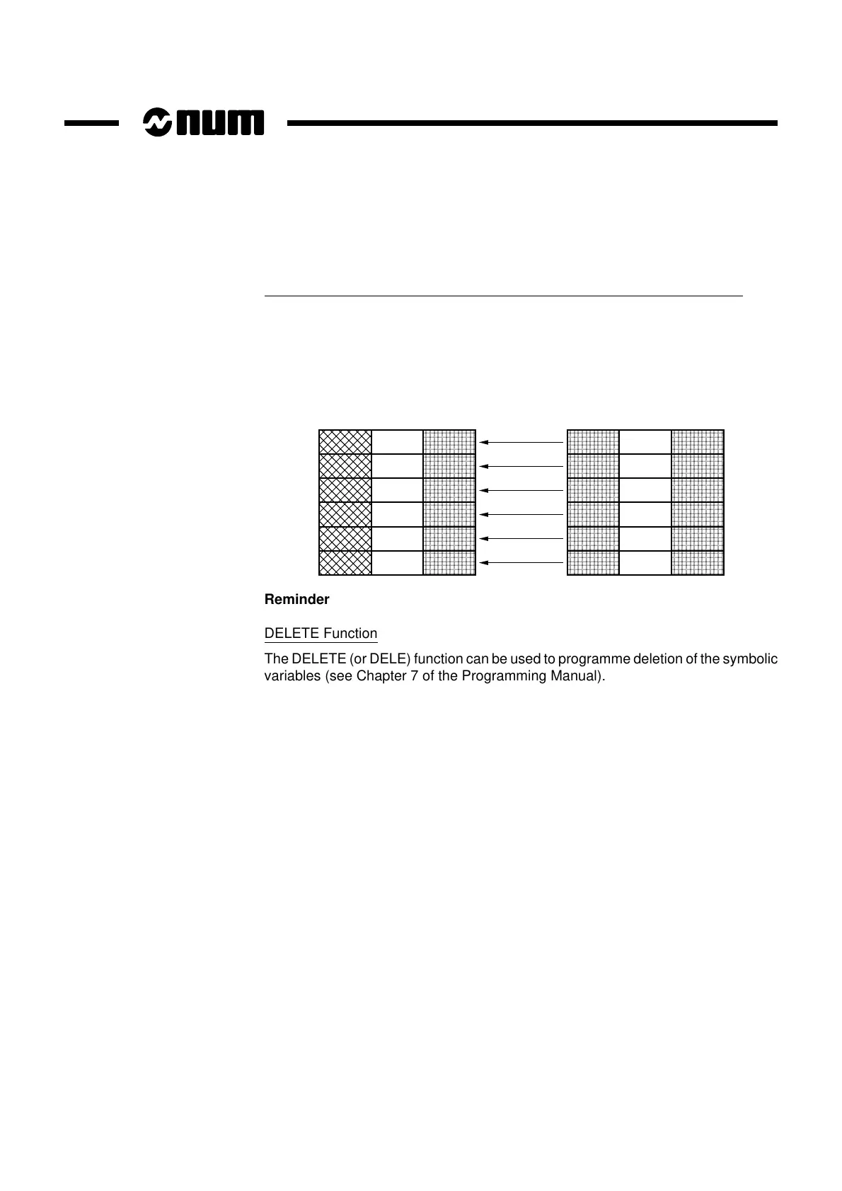 The DELETE (or DELE) function can be used to programme deletion of the symbolic