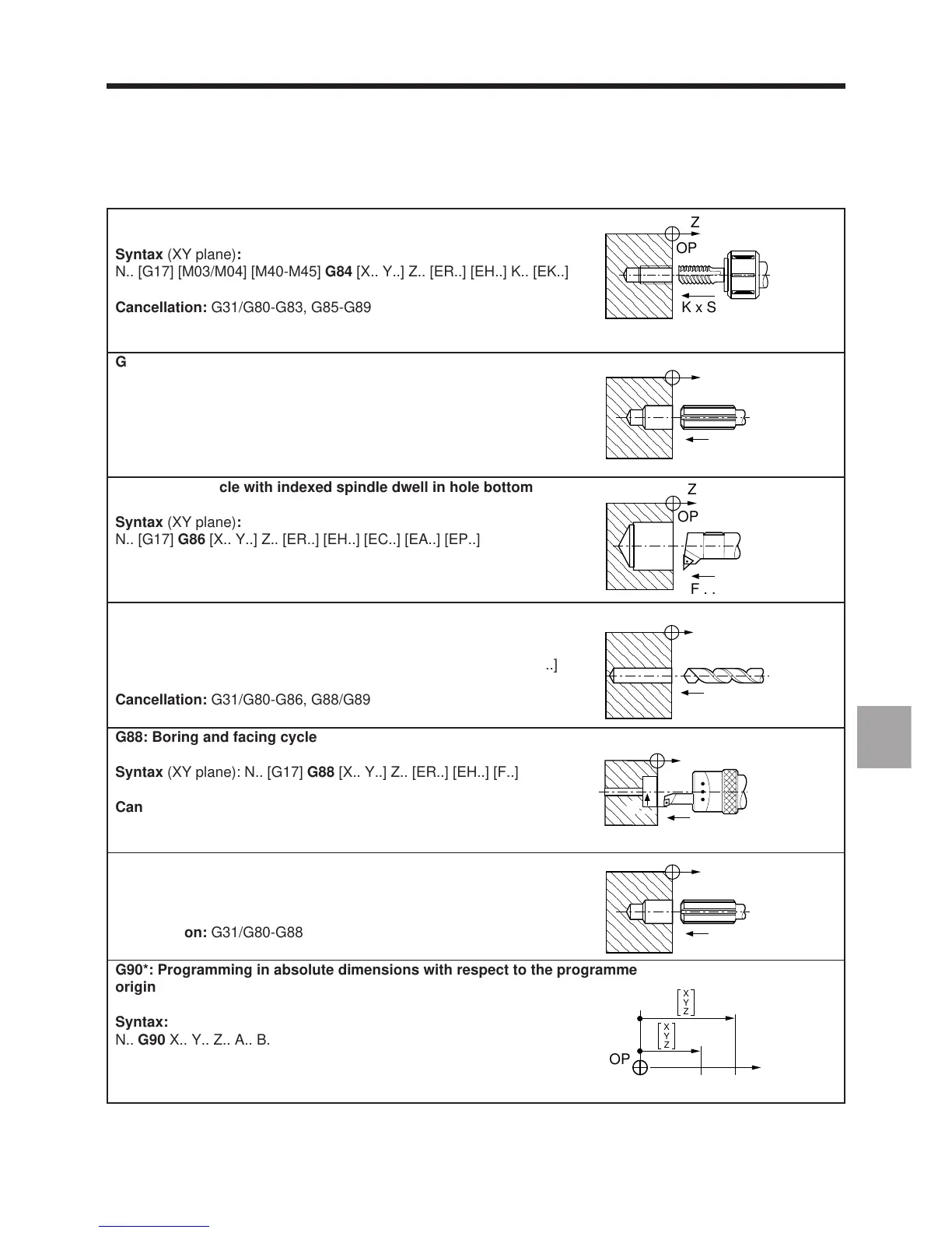Syntax (XY plane): N.. [G17] G89 [X.. Y..] Z.. [ER..] [EH..] [EF..] [F..]