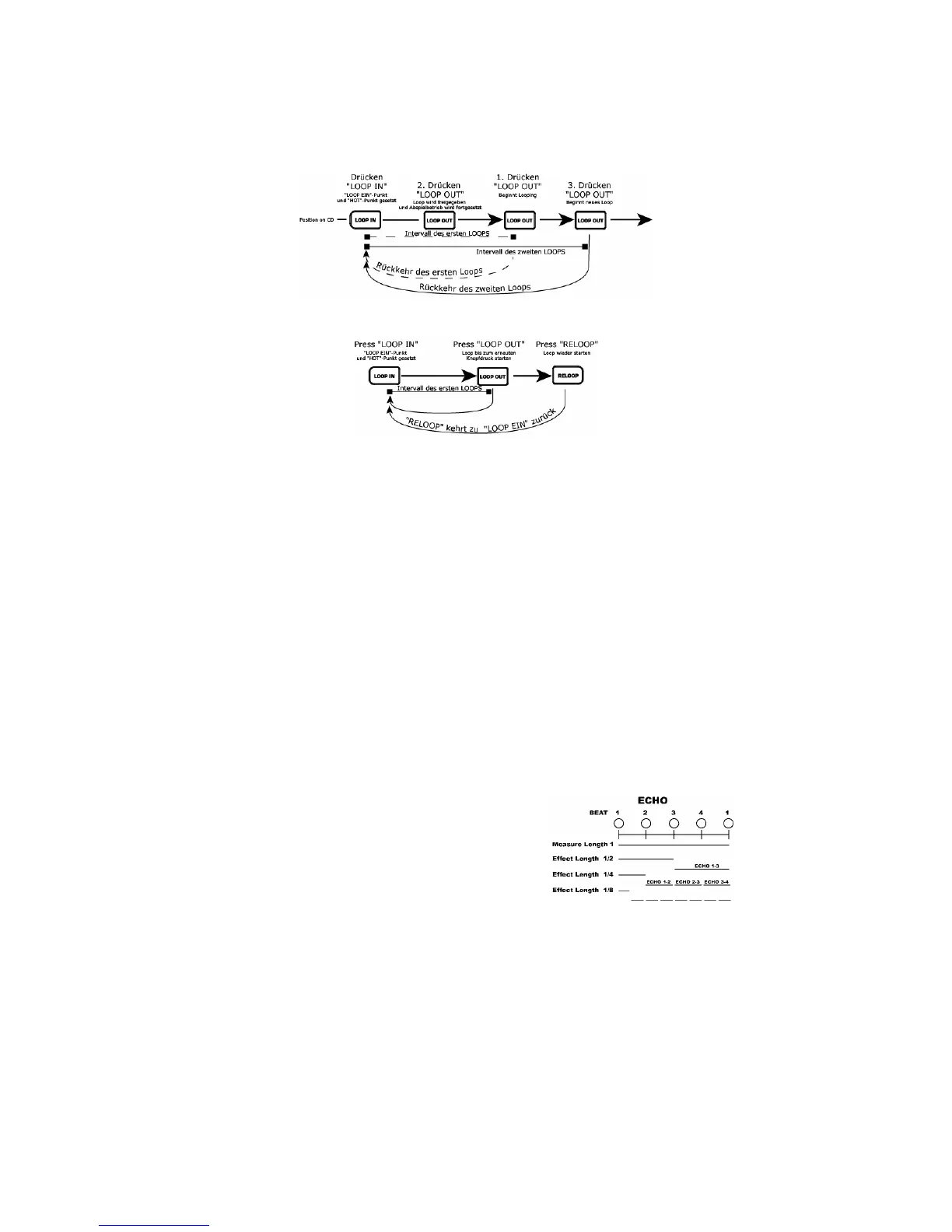 Bei der Verwendung mit “Reloop”, verschiebt das Gerät den gesamten Loop, indem die Loop In-