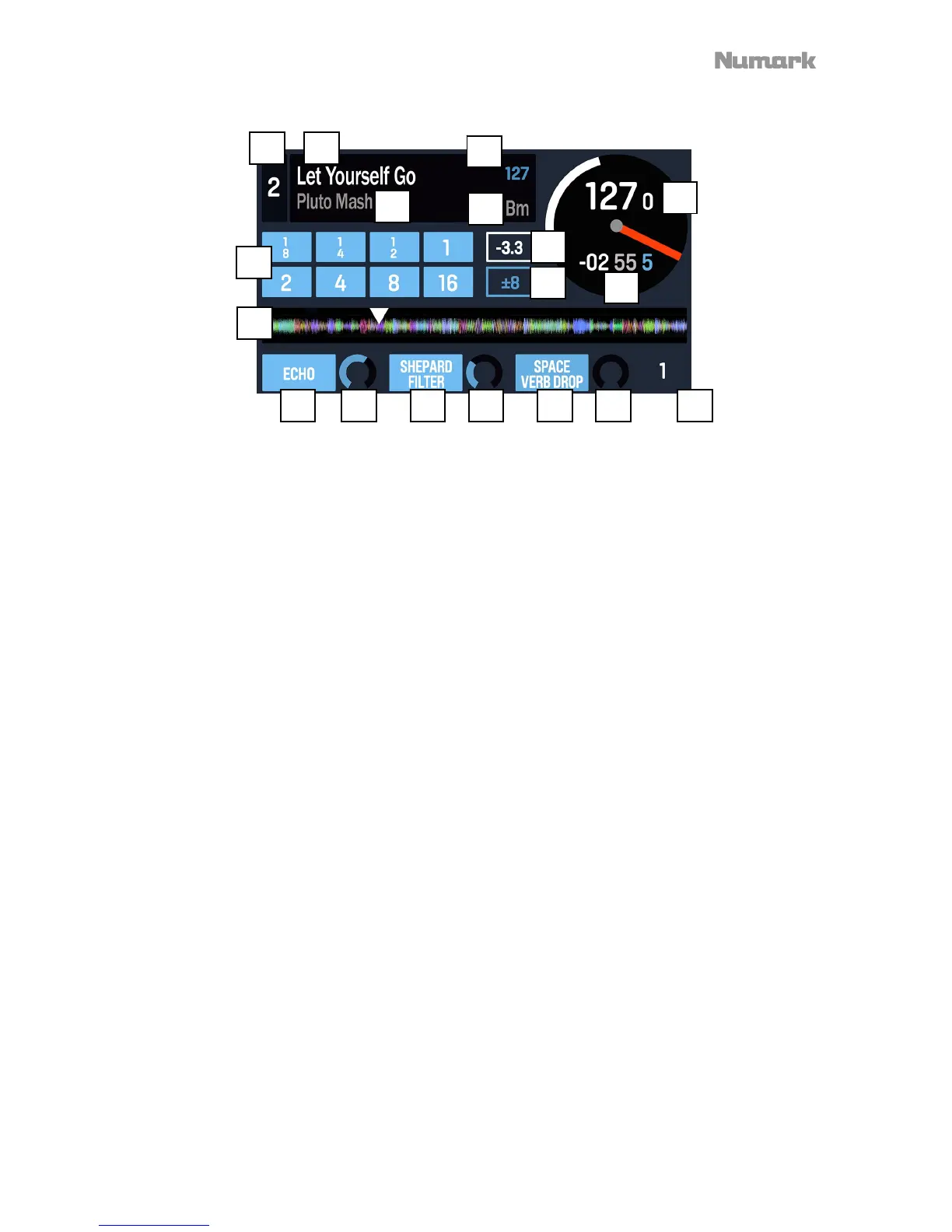 10. Aperçu de la piste : Ce champ représente la forme d’onde de la piste chargée, indiquée par