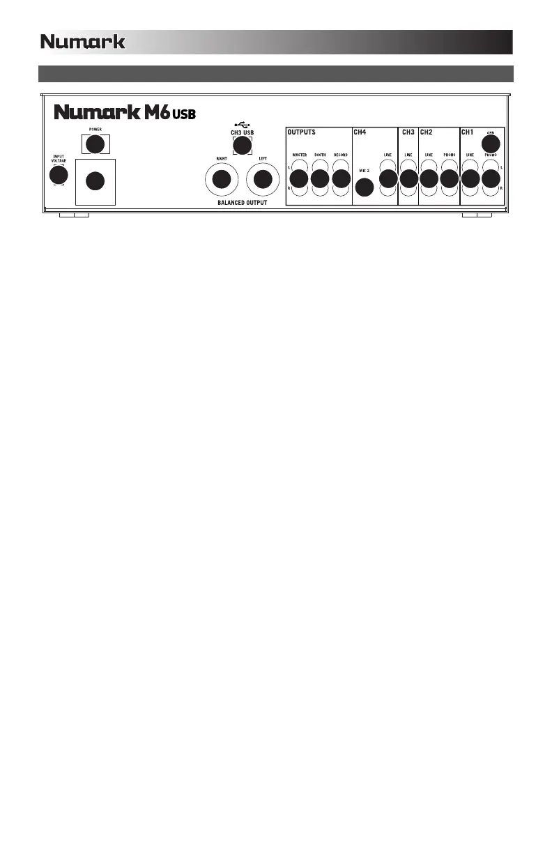 3. POWER SWITCH – Turns the mixer on and off. Turn on the mixer after all input devices have been