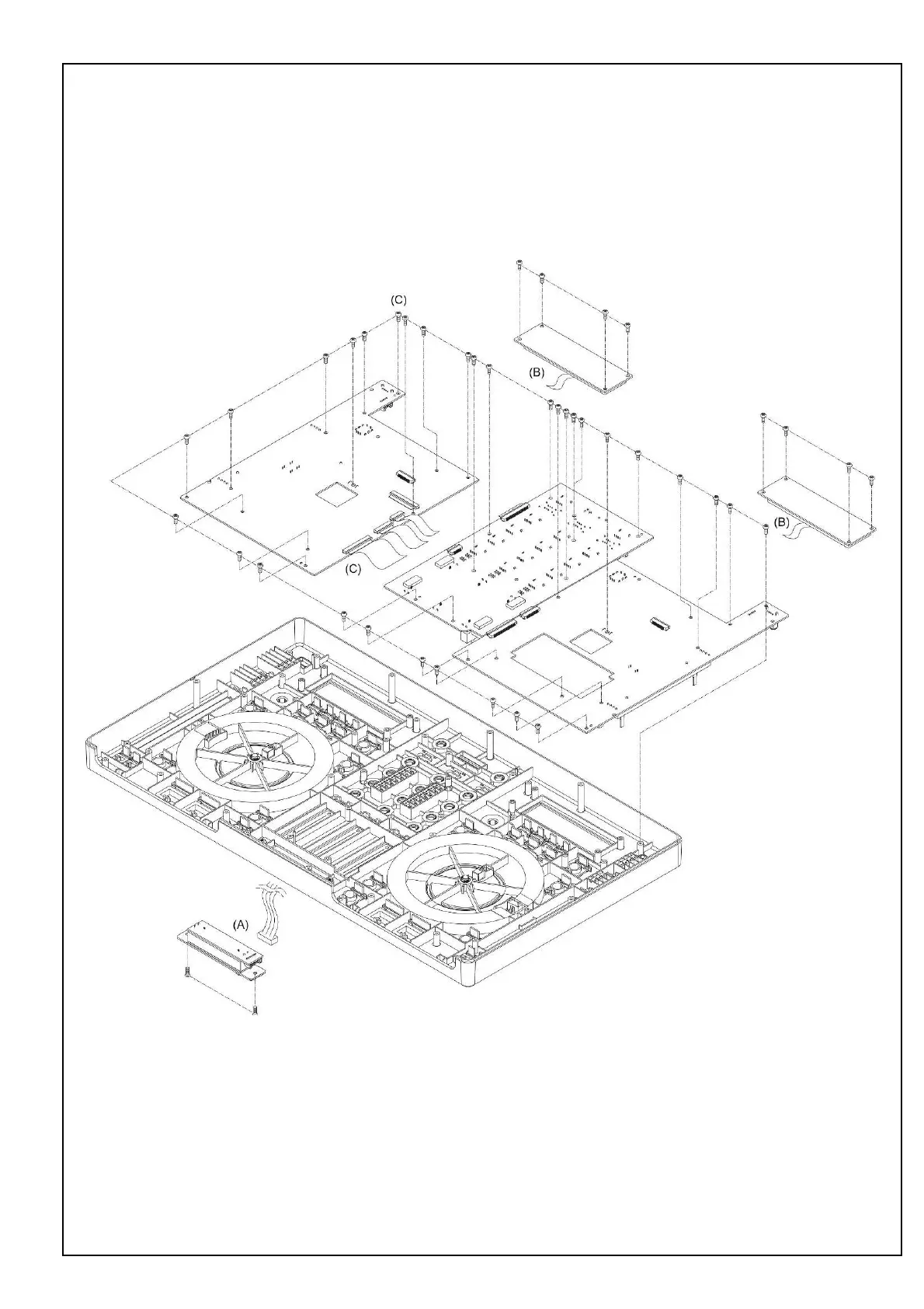(C) REMOVE THE 32 PCS SCREWS AND 3 PCS CONNECTORS BEFORE REMOVAL OF MIXER PCB AND RIGHT