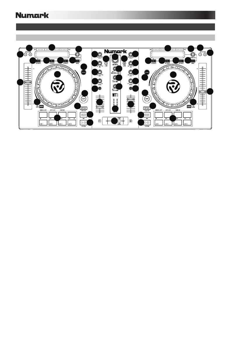 5. Load: Press one of these buttons while a track is selected to assign it to Deck 1 and 2,