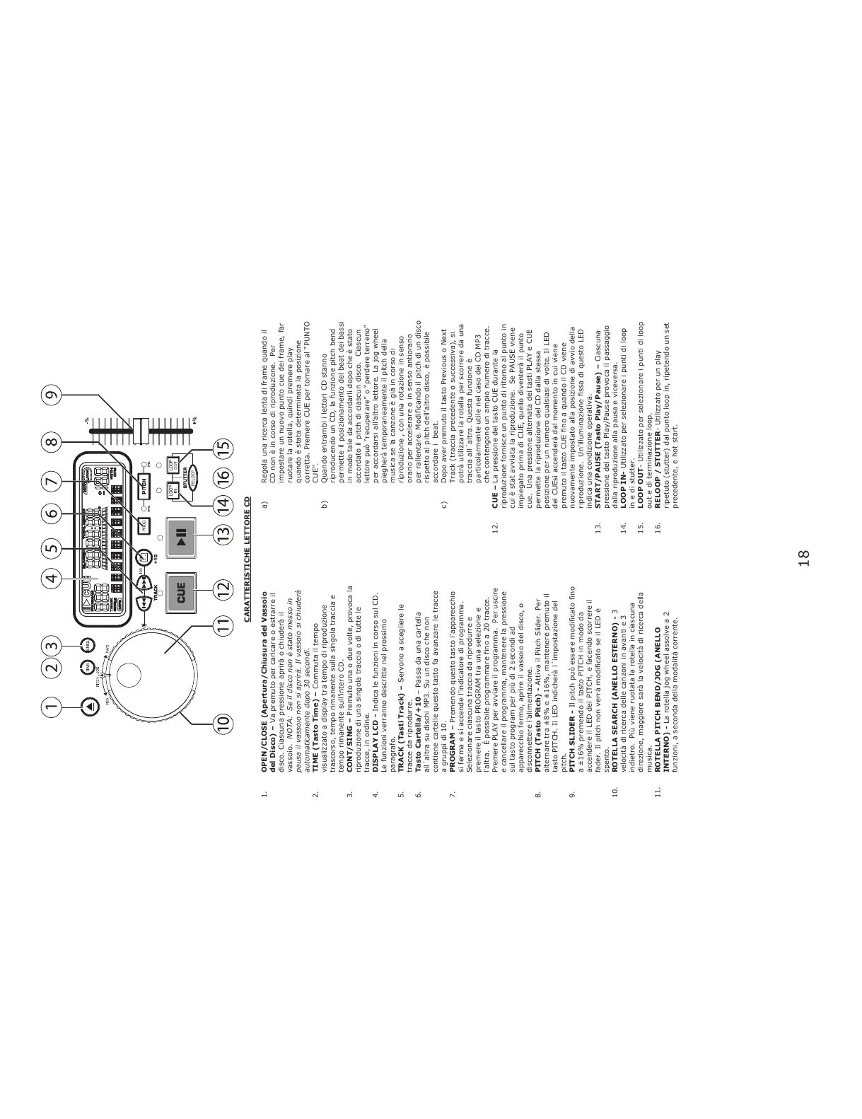 8. PITCH (Tasto Pitch) - Attiva il Pitch Slider. Per