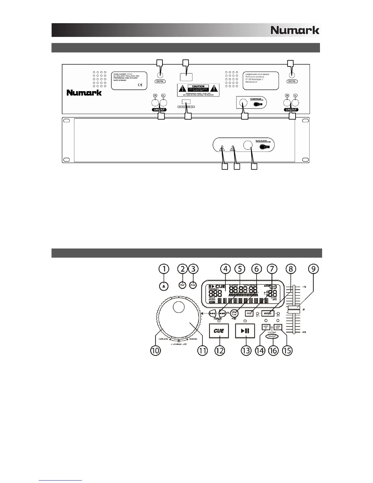 8. PITCH (Tasto Pitch) – Attiva il Pitch Slider. Per alternare tra ±8% e ±16%, mantenere premuto il tasto PITCH. Il LED