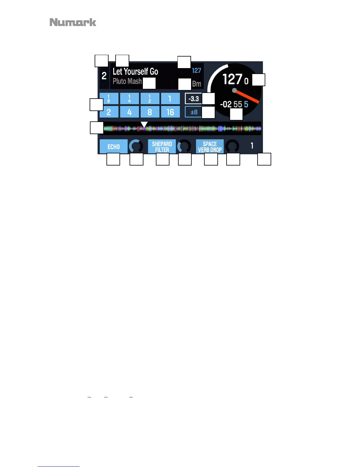 2. Nombre de la pista: El título de la pista cargada actualmente. Consulte la Vista de la