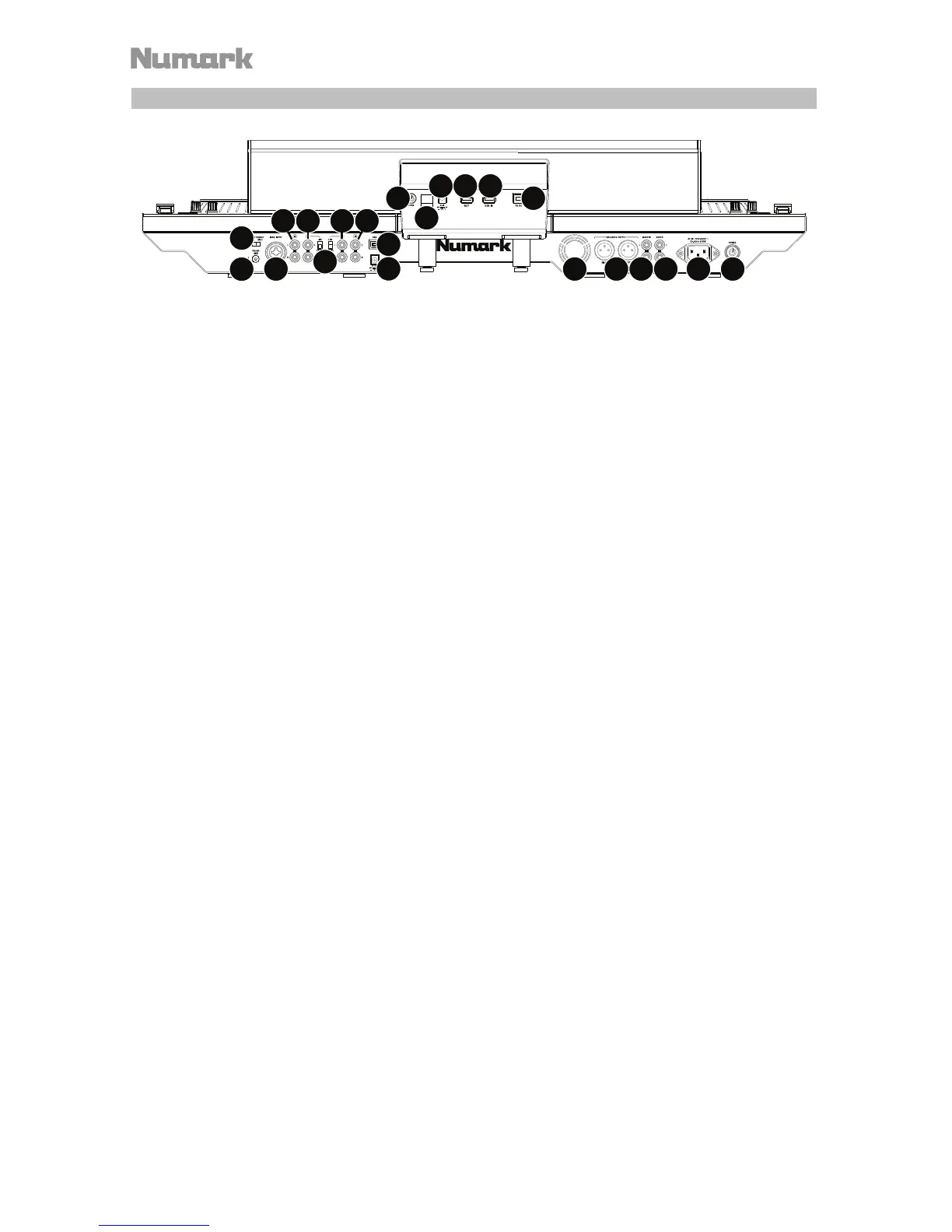 2. Interruptor de encendido del NS7III: Enciende y apaga el NS7III. Encienda el NS7III