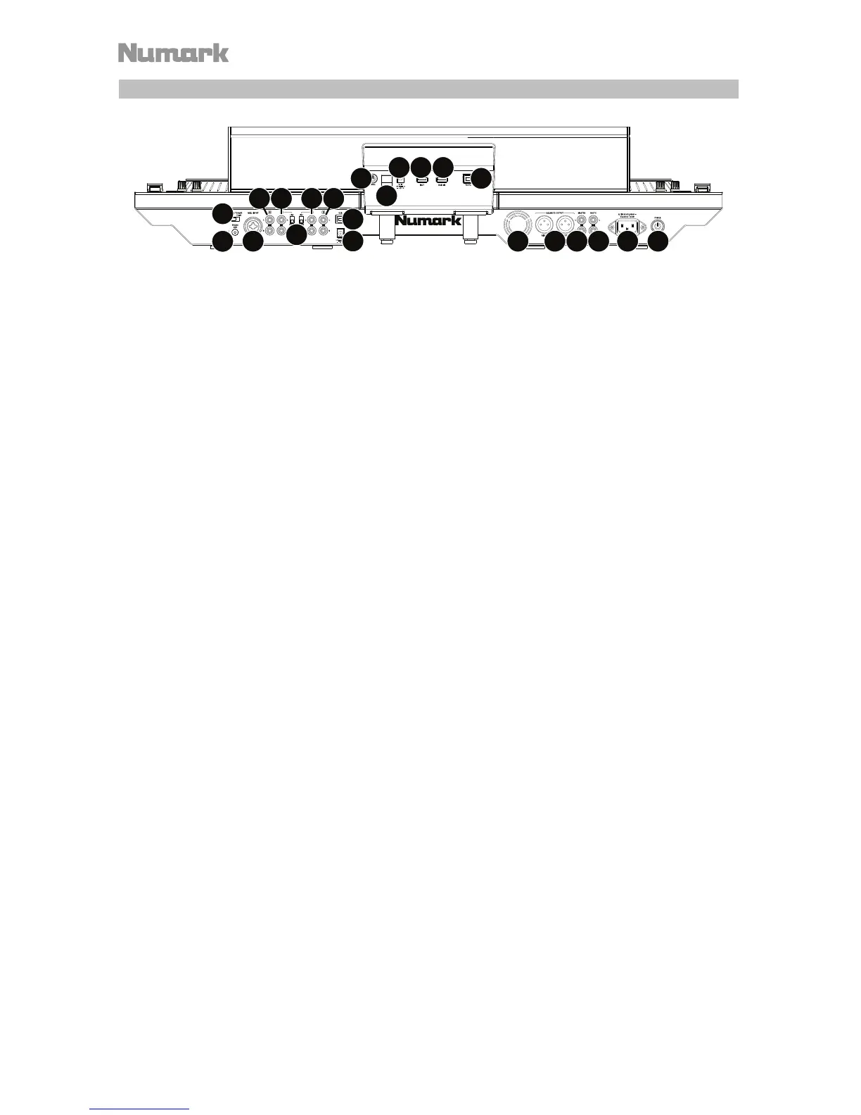 1. Entrée d’alimentation du NS7III : Utilisez le câble d’alimentation inclus pour brancher le