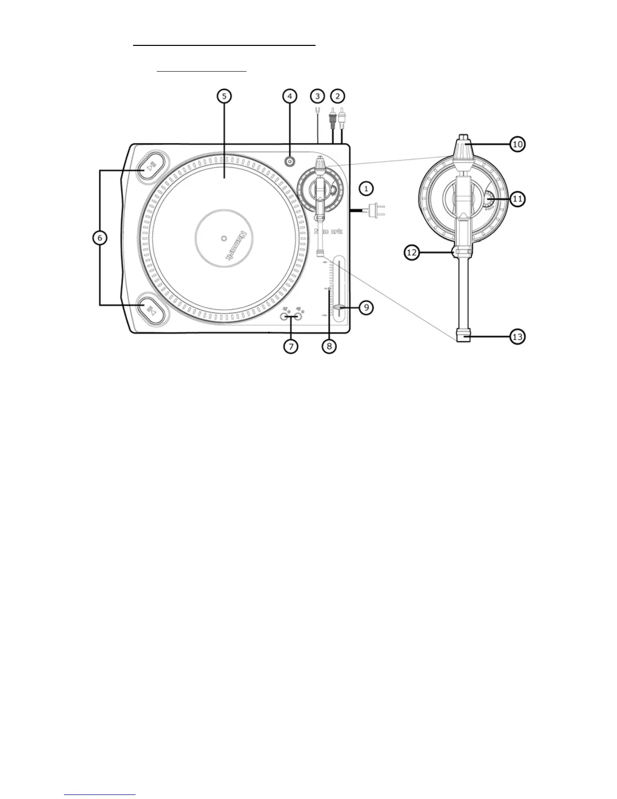 11. Ajuste Anti-Skate (anti-deslizamiento): Este botón se usa para compensar por las fuerzas de tracción
