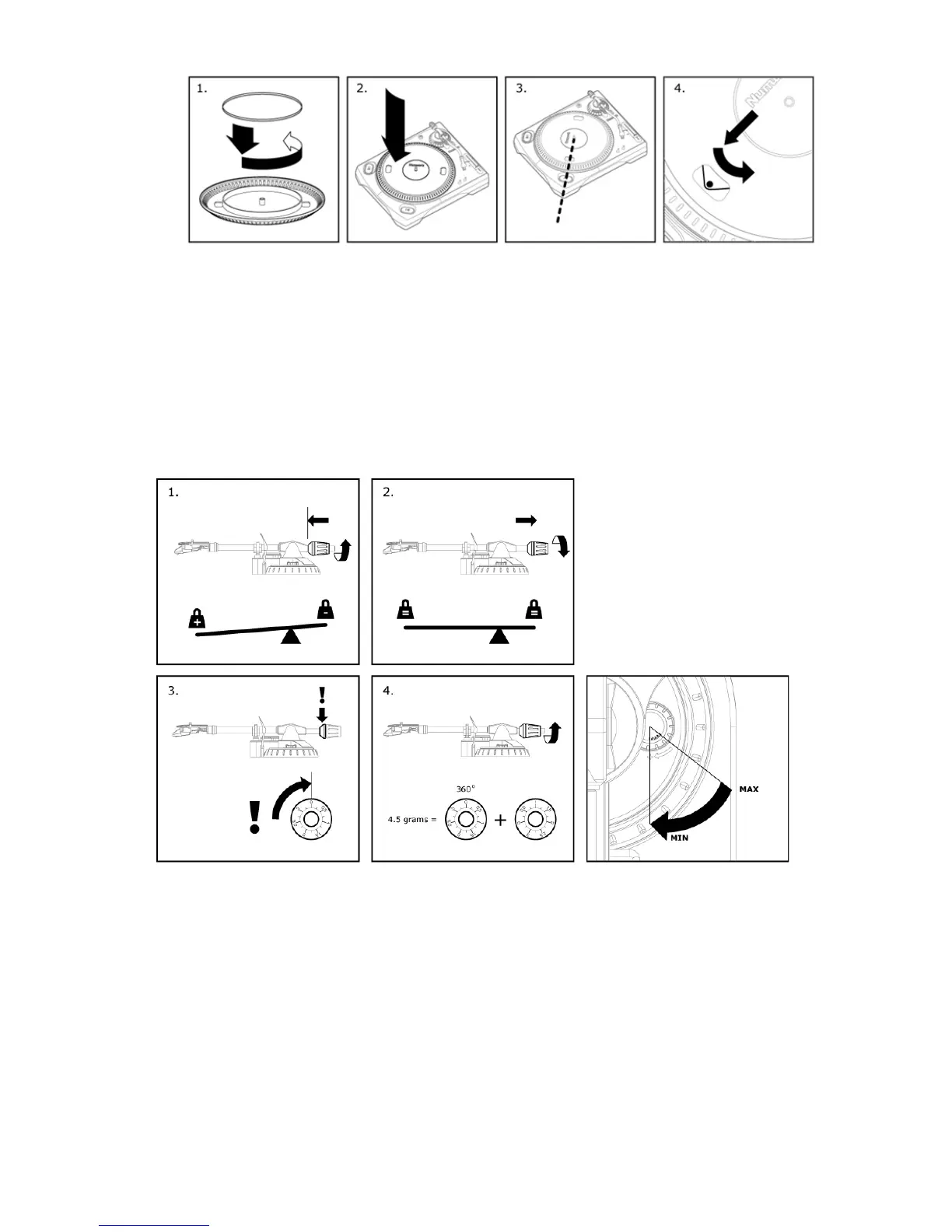 5. Plateau : Le plateau en aluminium doit être solidement fixé à la platine tourne-disque avant l’utilisation. La