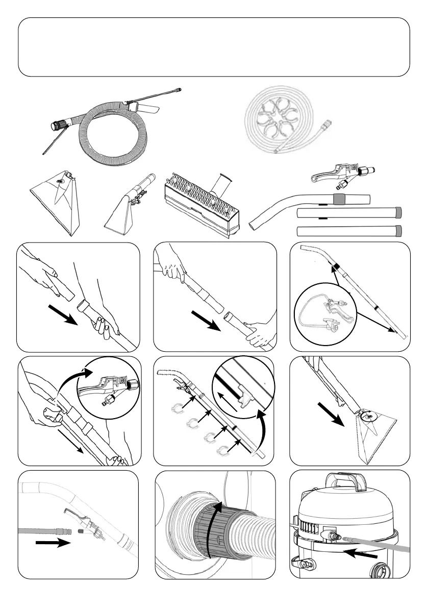 Wet/Assembling the machine for extraction use, Montage der Maschine, Montage de la machine, Machine samenstellen/