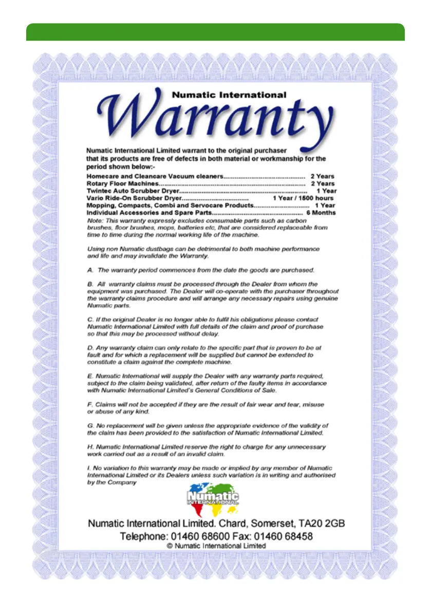 Numatic Henry 160 - Warranty and Claims; Warranty Terms and Exclusions; Warranty Claim Process