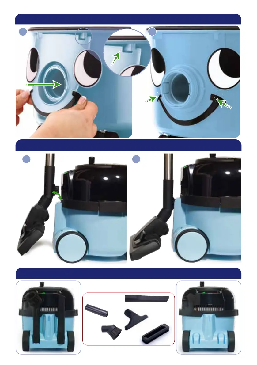 Numatic Henry Allergy - Vacuum Cleaner Assembly and Storage; Fitting the Face; Wand Docking; Tool Tidy