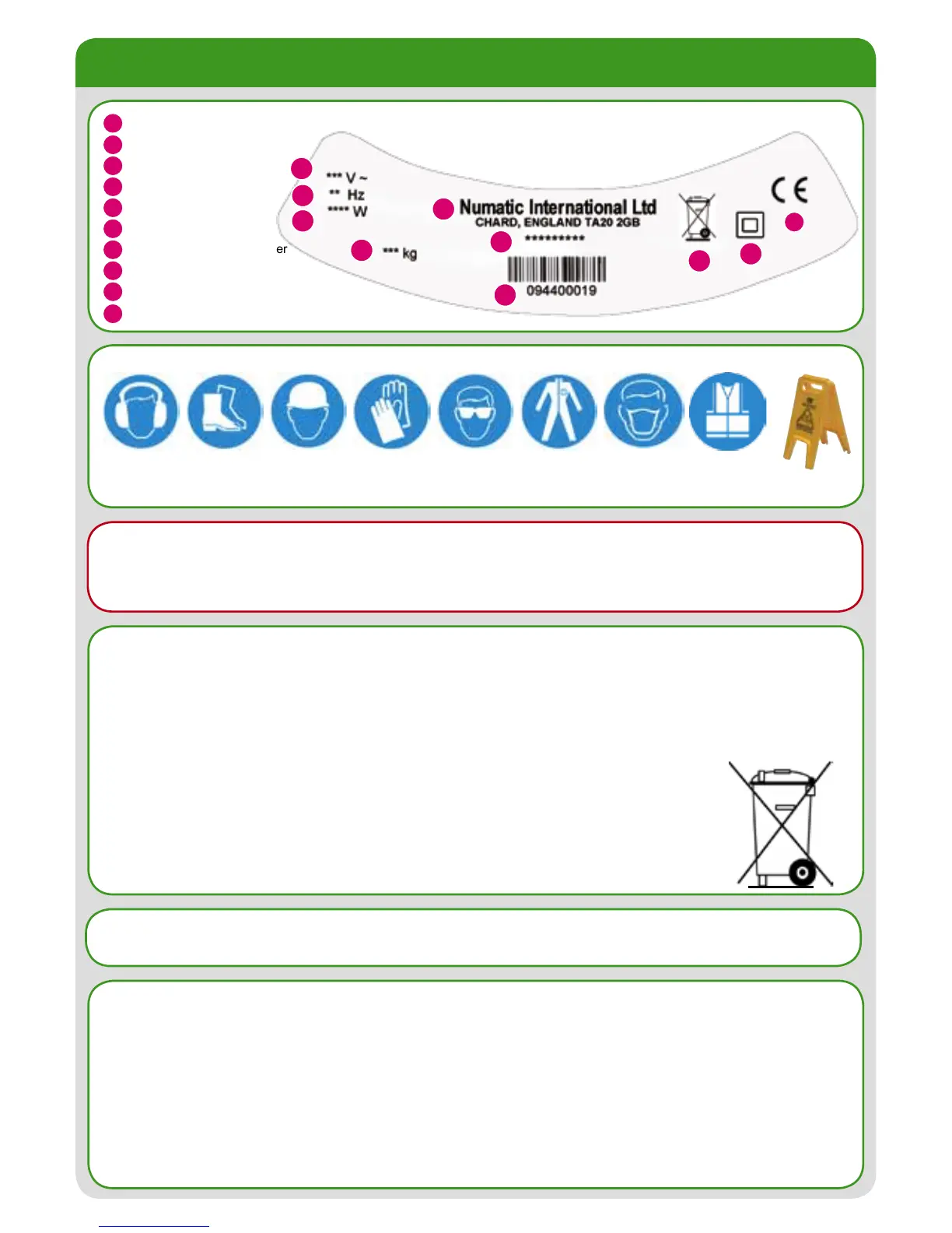 or the Numatic Technical helpline +44 (0)1460 269268