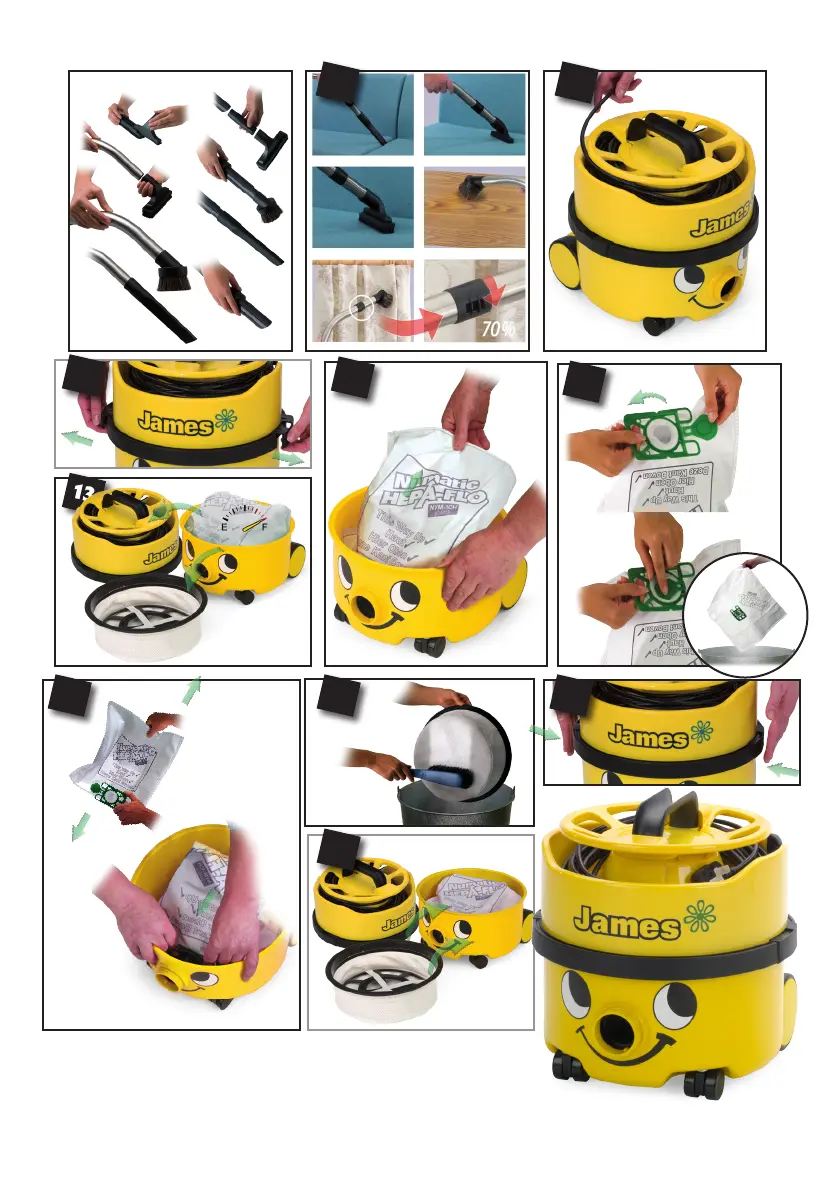 Numatic JVP 180 - Advanced Operation and Maintenance; Using Various Attachments; Dust Bag and Filter Replacement