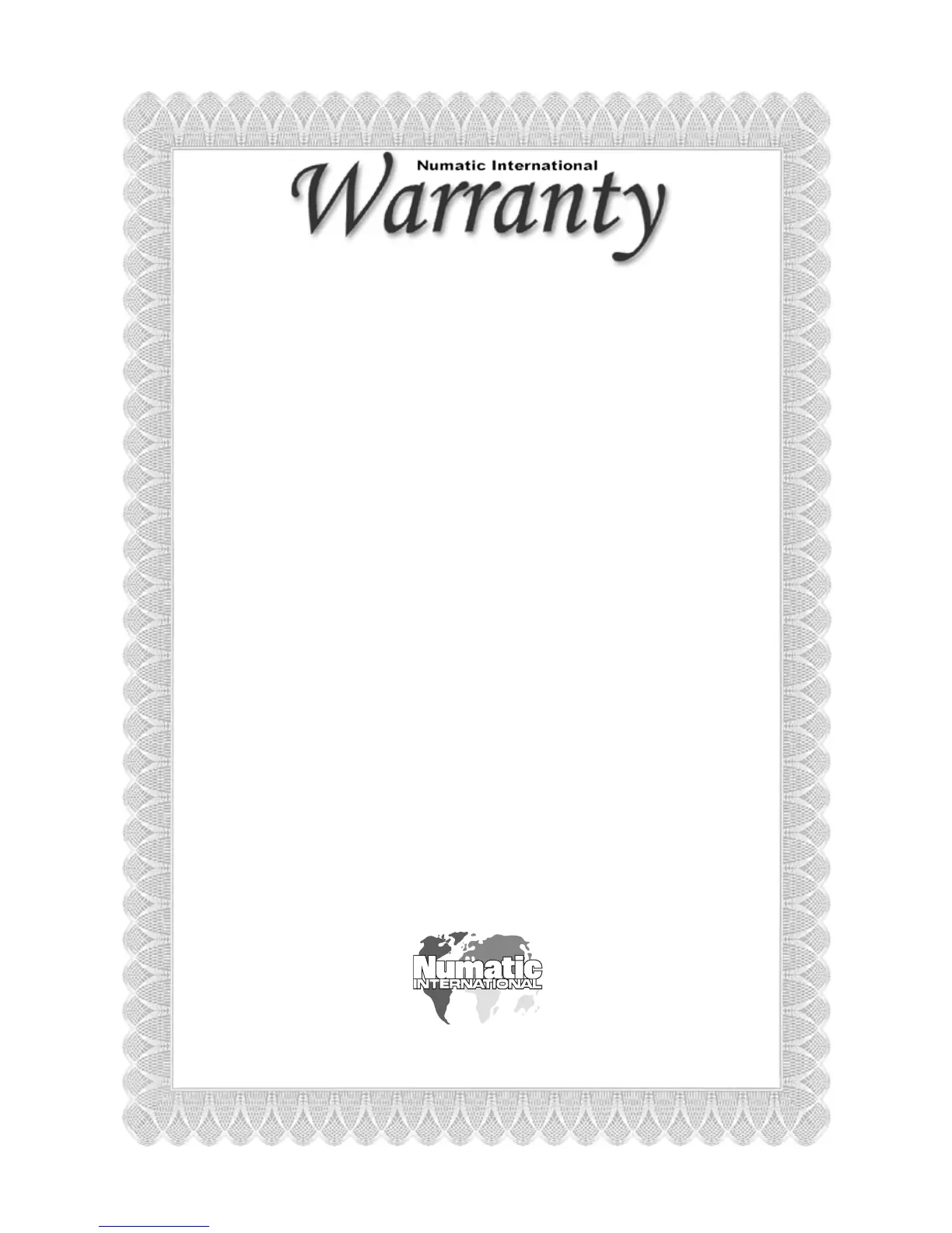 I. No variation to this warranty may be made or implied by any member of Numatic