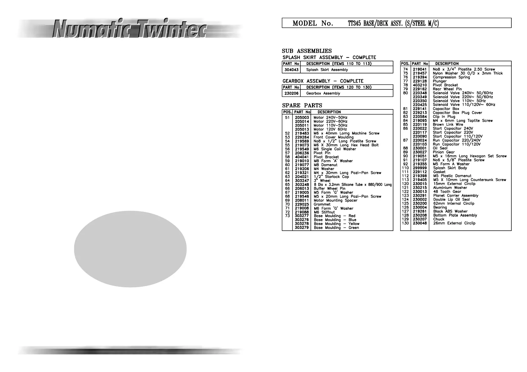 When ordering spare parts always quote the Model Number / Serial Number specified on the Rating Plate.