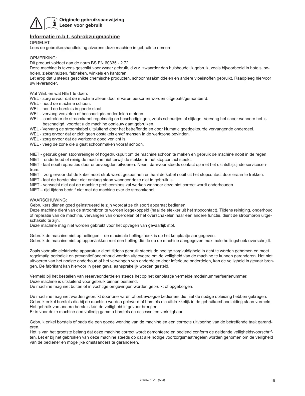 Informatie m.b.t. schrobzuigmachine