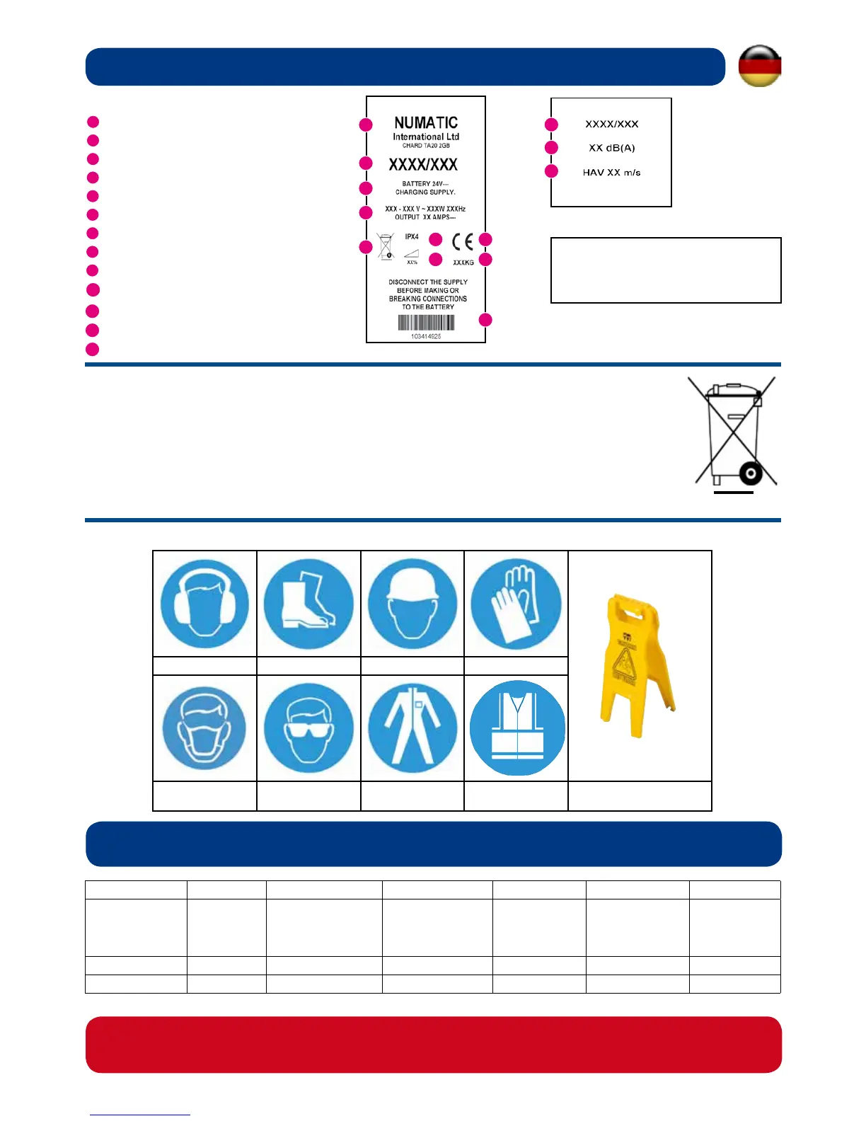 Ihren Numatic-Händler oder rufen Sie bei der Numatic Technical Helpline an unter 0049 (0)511 9842160.