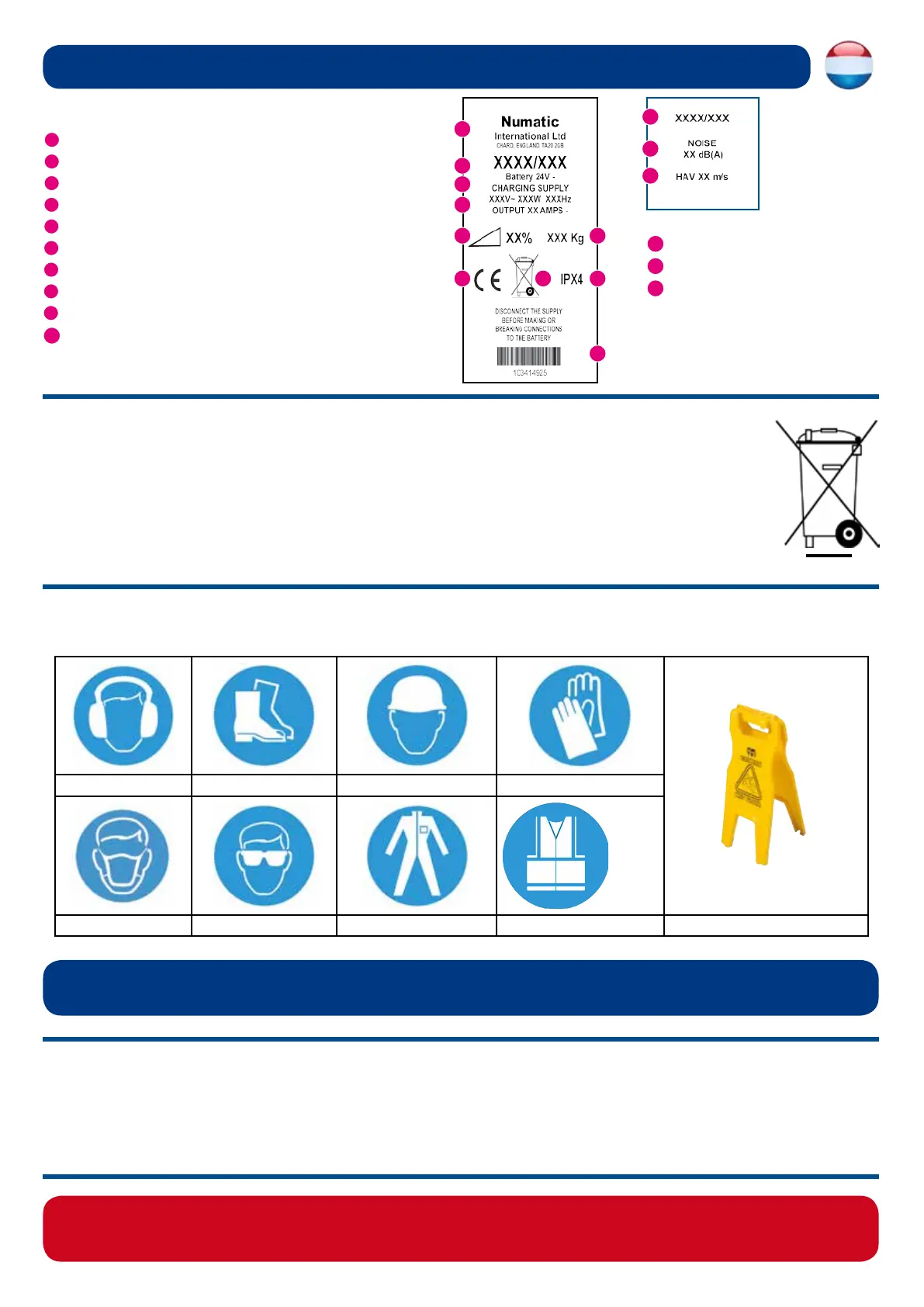 U kunt ook de technische hulplijn van Numatic bellen op +31 172 467 999