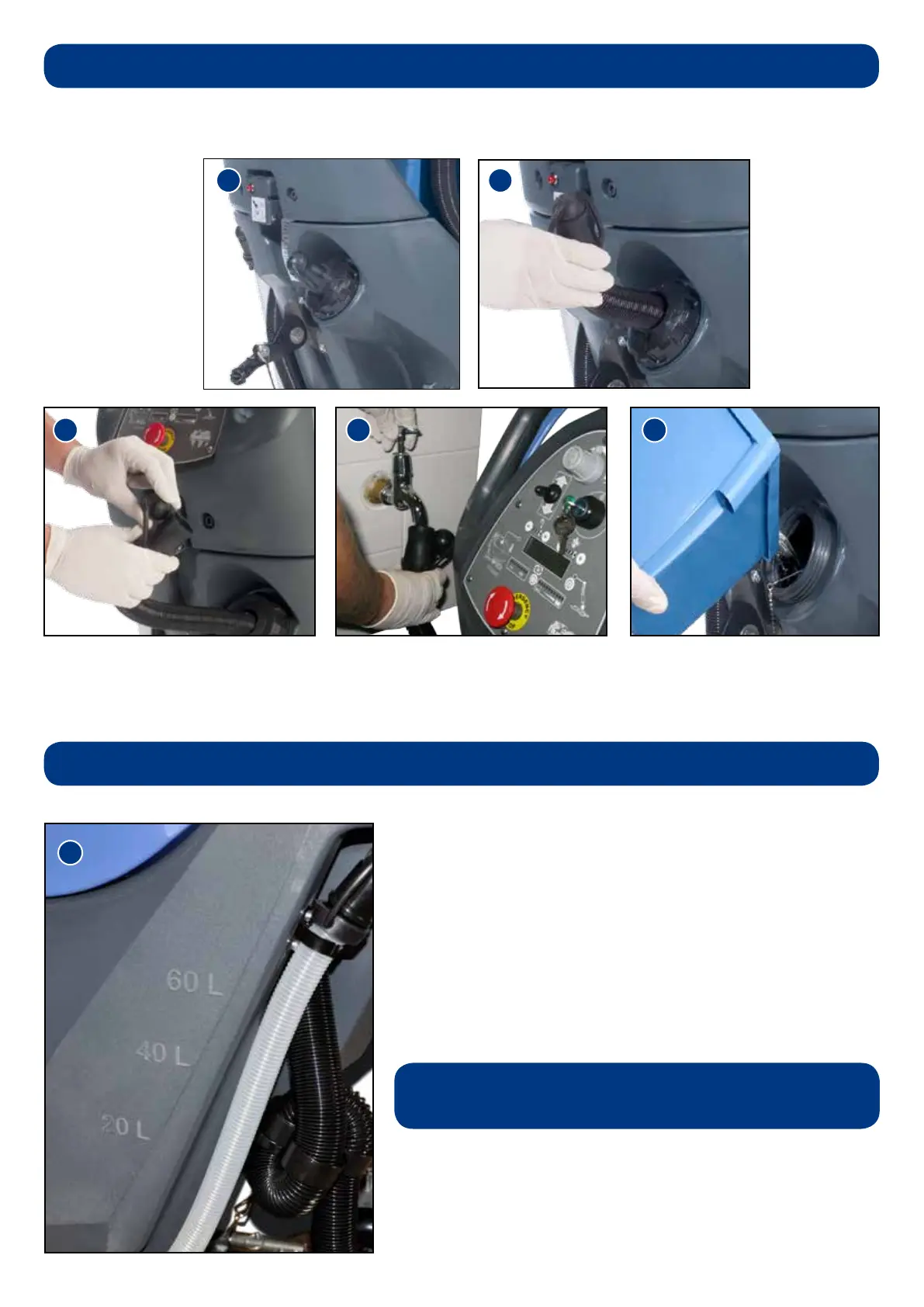 To ll the clean-water tank, extend the hose located to the rear of the machine in the centre of the removable ller cap,