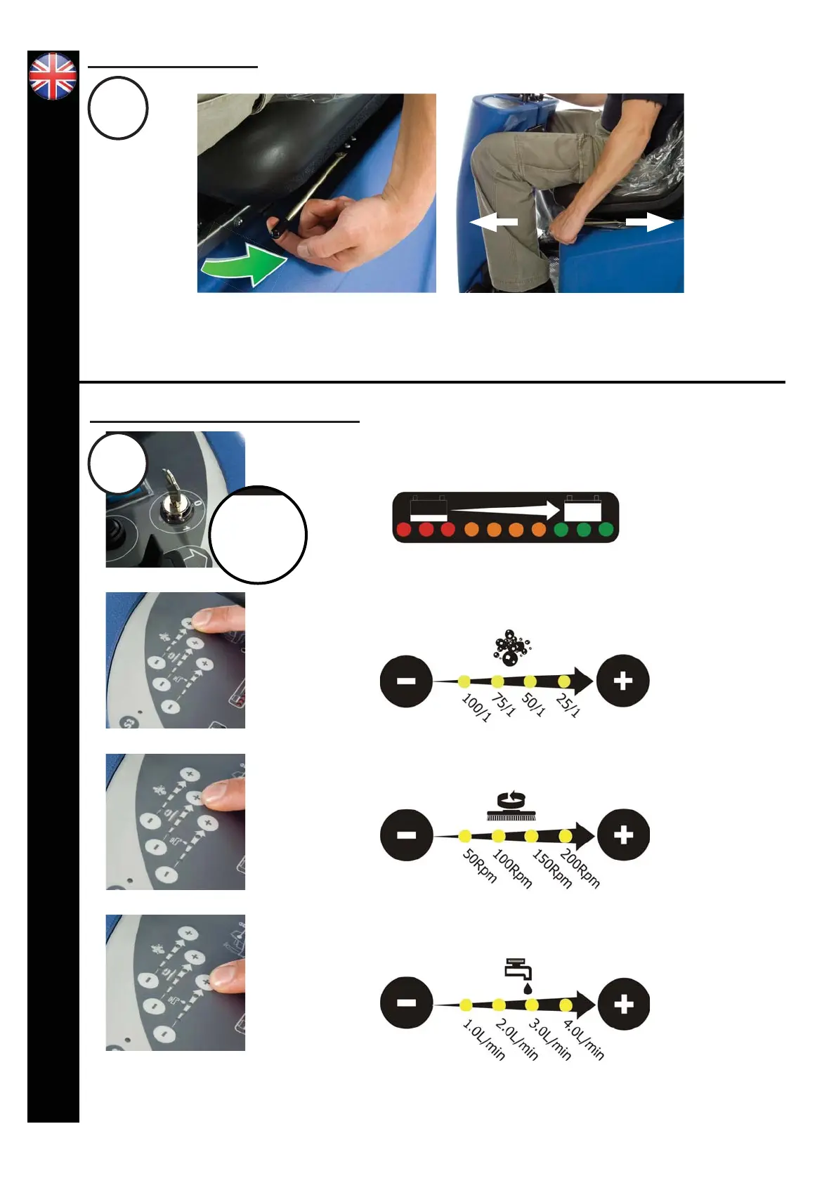 Sitting in the driving position, adjust the seat forwards or backwards as necessary by using the lever