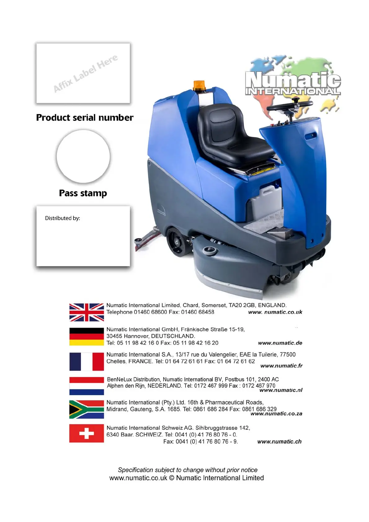 Numatic TTV678-300 - Quality Assurance,Serial Number; Kwaliteitsgarantie en Serienummer; Assurance Qualité Et Numéro de Série