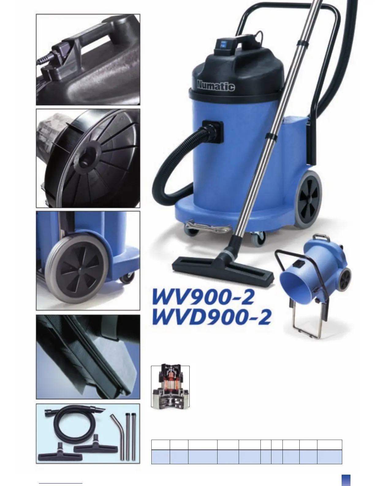 Model Motor Power Airflow Suction Dry Wet Range Weight Size