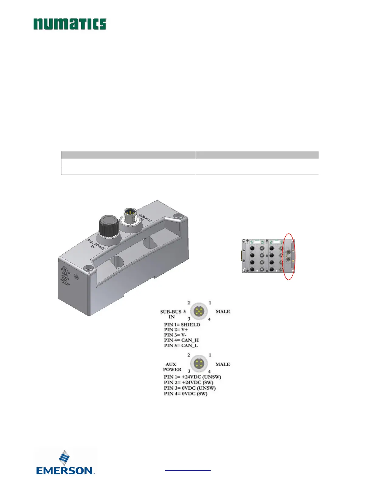 • SUB-BUS IN - 5 pin M12 male communication connector.