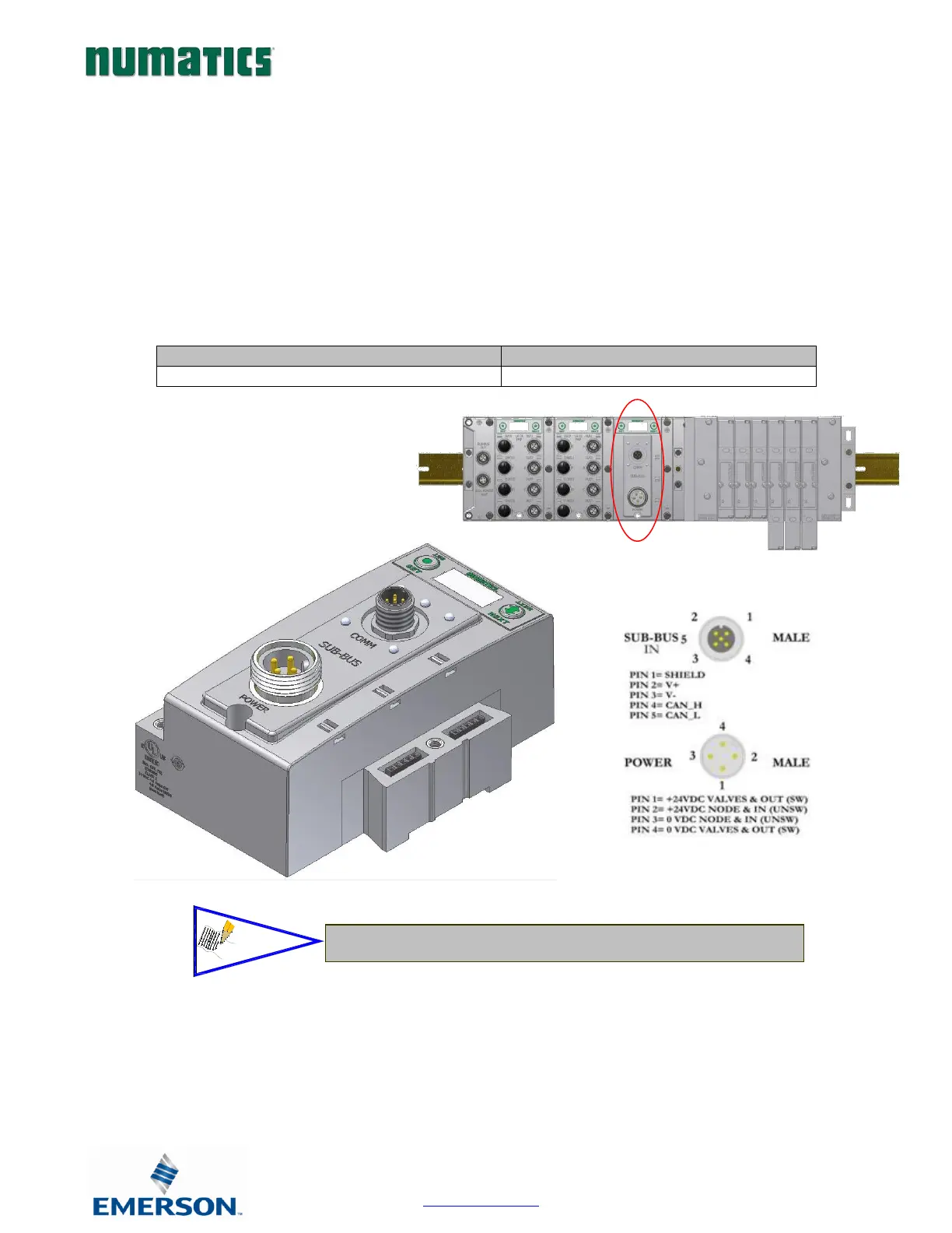 • COMM - 5 pin M12 male Sub-Bus input communication connector.